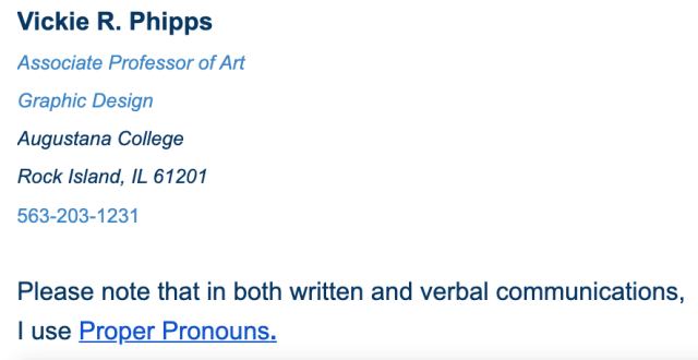 You are invited to use proper pronouns and if you need a way to explain proper pronouns you may link to this site. Here is an example of what that looks like: